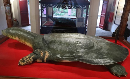 本殿の両側に 2 つの棟があり、右側の棟にはソード レイク タートルの標本 2 体が展示されています。外側の標本は1967年に死亡した「老」カメのもので、体重250kg、体長2.1メートルだった。「古い」カメの内部標本は2016年に死亡し、体重169kg、長さ2.08メートル、幅1.08メートルだった。両方の試験片はプラスティネーション法によって処理されました。