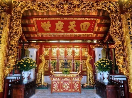拝殿は最初に大きな香炉が置かれる礼拝所です。中殿には、有名な教育の神であるヴァン シュオン、クアン ヴー、La Toを祀る場所があります、後宮は、モンゴル軍を 3 度破った国民的英雄、トラン フン ダオを崇拝する場所です