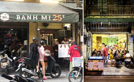 ハノイはバインミーの名物で有名で、おいしい店が隅々にあり、観光客が自由で選ぶことができます、購入の列に並んでいる人の70~80%は外国人です。BanhMi25 は他の多くのブランドのように歴史が長くなく、2014 年に設立されたばかりです、当初は歩道にある小さなパン売り台車で、1 日に数十個のパンを販売していました