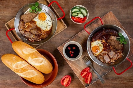 メニューには、豚肉 2 種類、鶏肉 3 種類、牛肉 2 種類、ベジタリアン 4 種類を含むベトナム風サンドイッチのバリエーションが用意されています。追加料金で、卵、風味豊かなパテ、グリルポーク、ハニーグリルチキン、豆腐、またはマッシュルームフロスを追加して、バインミーを完全にカスタマイズすることもできます