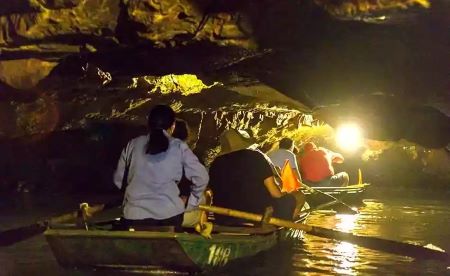 このツアーで最も印象的なのは、長さ 1 キロメートルの点状の洞窟です。洞窟の中では一人ではないことに注意してください。私がこのボートツアーに参加したのは、ベトナム北部が比較的寒かった冬でしたが、それでも観光客の大群がいました
