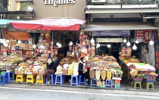 1960 年代以前は、ハンドゥオン通りはハノイ最大の菓子貿易の中心地でした。中秋節や旧正月には、近隣全体が売り手と買い手でお祭りのように賑わいます