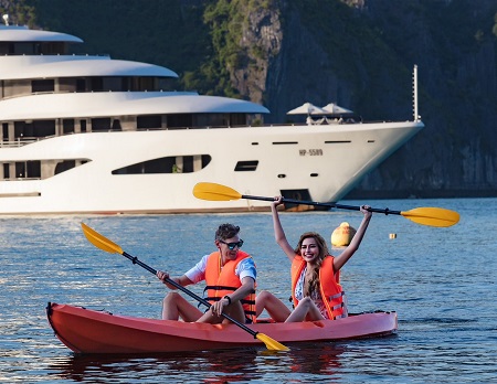 クルーズ中のアクティビティ: 観光客は、1泊クルーズ中に、洞窟訪問、カヤック、真珠の村訪問、漁村訪問のサイクリング、水泳、登山など、さまざまなアクティビティに参加できます。船上では、料理教室、アフタヌーンティーパーティー、ライブ音楽鑑賞、日の出鑑賞、夕日鑑賞、太極拳の練習、リラックスできるスパ、夜のエンターテイメント、イカ釣りなどの興味深いアクティビティをお楽しみいただけます。