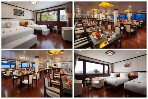 多くの観光客は、時間と体験を最大限に活用できるため、ハロン湾での一晩のクルーズを好みます。旅は午前中にハノイから始まり、正午までにハロン湾に到着します。この間、美しい湾を探索し、船上で昼食を楽しむことができます。その後、夕食の時間まで湾でのクルーズを続けます。その後、船上で夜を過ごし、予定されているアクティビティに参加できます。翌日は朝食後、チェックアウト時間まで旅を続け、その後バスまたはシャトルバスでハノイに戻ります。