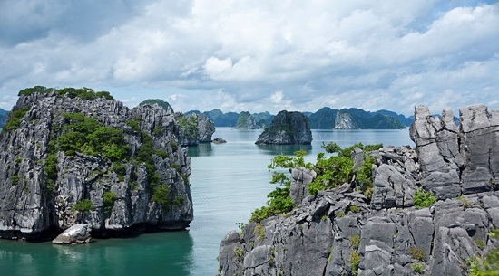 南西部はカットバ諸島に隣接しています。西と北西はクアンイェンの町からハロン市、カムファ市を経てヴァンドン島地区の端まで延びる約120kmの海岸線で本土と接しています。南東と南はトンキン湾に面しています。ハロン湾は、東経106度58分~107度22分、北緯20度45分~20度50分の座標に位置し、コアエリアと緩衝地帯を含む1,553km²のエリアに、大小1,969の島々が含まれています。.のうち、989個には名前があり、980個には名前がありません