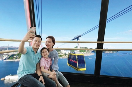 Nu Hoangロープウェイは最長 2.22 m で、Dai Duong駅からサン ステーションまでのルートを結び、クCuu Luc海を越えて 3 つの峠の頂上まで続きます。ケーブル カーに座って、非常に魔法のような景色を鑑賞する機会があります。岩と水の世界、水に浮かぶどこまでも続く石灰岩の山々、