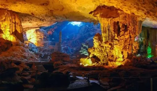 一晩のクルーズを予約すると、この有名な湾の隠された秘密を探索する機会が得られます。この地域で見逃せない素晴らしいものは、洞窟です。何千年も前の神秘的な伝説を持つ洞窟がたくさんあります。いくつか例を挙げると、スンソット洞窟、ミークン洞窟、ティエンクン洞窟、ダウゴ洞窟、トロン洞窟、チンヌ洞窟など、この地域で最も訪問者が多い洞窟です。2泊3日のツアーでは、これらの洞窟のほとんどを訪れることができます。各洞窟には独自の美しさと特徴があるため、旅行はまったく退屈ではありません。洞窟内のさまざまな形とサイズのカラフルな鍾乳石は、ライトの下で魔法の世界に入ったような気分にさせてくれます。科学に興味がある人にとって、これらのユニークな洞窟は研究する価値があります。