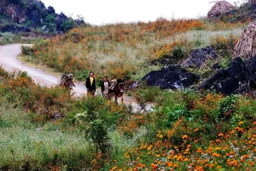 10月と11月、ドンヴァンカルスト高原は白とピンクのソバの花で飾られます。バイクで山道を走り、美しい景色を眺め、さまざまな民族の人々の家を探索し、彼らの典型的な生活様式を学びましょう。涼しいそよ風を感じ、透き通った水を映すニョークエ川でのボート乗りをお見逃しなく。少数民族の市場を通り過ぎ、ソバ、もち米、ローストモス、水牛のジャーキーなどから作られた地元の珍味をお楽しみください。