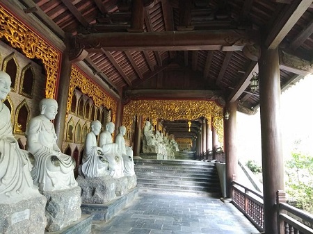 阿羅漢回廊は、三門の門の両端を繋ぐ234の空間で構成されており、参拝の際には欠かせない場所です。この建物は全長 1,052 メートルに及び、重さ約 4 トンの一枚岩の緑色の石で作られた 500 体の羅漢像が含まれています
